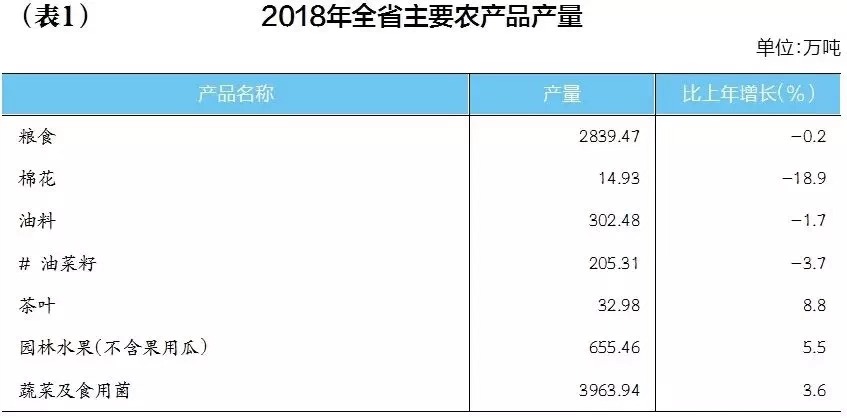粮食产能保持稳定。全省粮食总产量2839.47万吨,下降0.2%,连续6年稳定在2500万吨(500亿斤)以上;种植面积4847.01千公顷,下降0.1%。