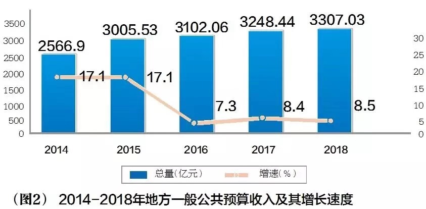 全年全省完成财政总收入5684.85亿元,增长8.5%,其中地方一般公共预算收入3307.03亿元,增长8.5%。在地方一般公共预算收入中,税收收入2463.46亿元,增长9.6%。全年财政支出7257.55亿元,增长6.7%。